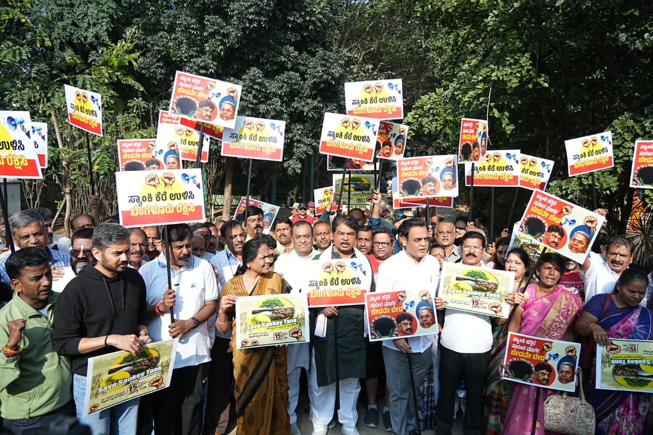 ಕಾಂಗ್ರೆಸ್ ಸರ್ಕಾರ ಪ್ರಕೃತಿಯನ್ನು ನಾಶಪಡಿಸಿ, ಕೆರೆಗಳನ್ನು ಹಾಳುಮಾಡಿ, ಅವೈಜ್ಞಾನಿಕ ಮೇಲುಸೇತುವೆಗಳನ್ನು ನಿರ್ಮಿಸಿ, ಸ್ಯಾಂಕಿ ಕೆರೆಯ ನಾಶಕ್ಕೆ ಮುಂದಾಗಿದ್ದು, ಈ ಕೆರೆಯ ಸಂರಕ್ಷಣೆಗಾಗಿ ಸಹಿ ಸಂಗ್ರಹ, ವೀಕ್ಷಣೆ ಹಾಗೂ ಸರ್ಕಾರದ ಅಧಿಕಾರಿಗಳೊಂದಿಗೆ ಪರಿಶೀಲನೆಯನ್ನು ಇಂದು ಮಲ್ಲೇಶ್ವರದ 18ನೇ ಕ್ರಾಸ್ ಬಳಿ ಇರುವ ಸ್ಯಾಂಕಿ ಕೆರೆಯ ಮುಖ್ಯದ್ವಾರದ ಬಳಿ ಹಮ್ಮಿಕೊಳ್ಳಲಾಗಿತ್ತು. ಈ ಸಂದರ್ಭದಲ್ಲಿ ಮಾತನಾಡಿದ ಅವರು, ಬಿಹಾರದ ಚುನಾವಣೆಗೆ ನೀವು 400 ಕೋಟಿ ಕಳುಹಿಸುತ್ತೀರಿ. ಅದು ಗೋವಿಂದ ಆಗಿದೆ ಎಂದು ಟೀಕಿಸಿದರು.