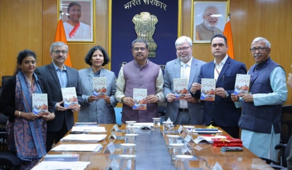 ನವದೆಹಲಿ: ಕೇಂದ್ರ ಶಿಕ್ಷಣ ಸಚಿವ ಧರ್ಮೇಂದ್ರ ಪ್ರಧಾನ್ ಇಂದು ನವದೆಹಲಿಯಲ್ಲಿ ಖತ್ಬಾತ್-ಎ-ಮೋದಿ ಎಂಬ ಪುಸ್ತಕವನ್ನು ಅನಾವರಣಗೊಳಿಸಿದರು.